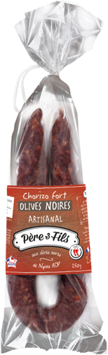 Boucherie / Charcuterie / Traiteur : GROUPE DEBROAS – PAVEYROL Chorizo Fort aux Olives Noires 225g.