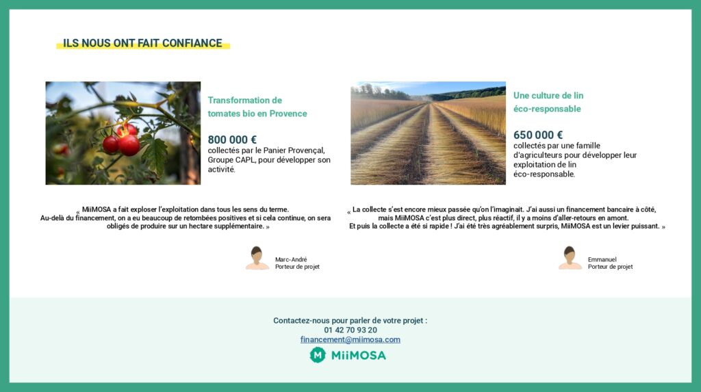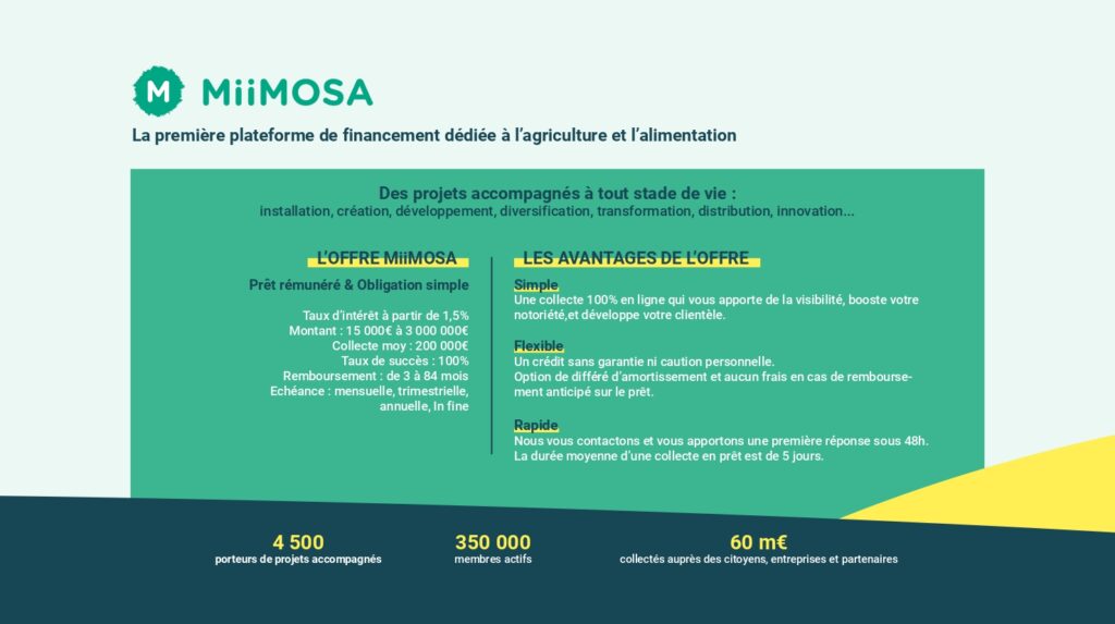 MiiMOSA est la plateforme de financement leader en Europe sur les thématiques agricoles et alimentaires.