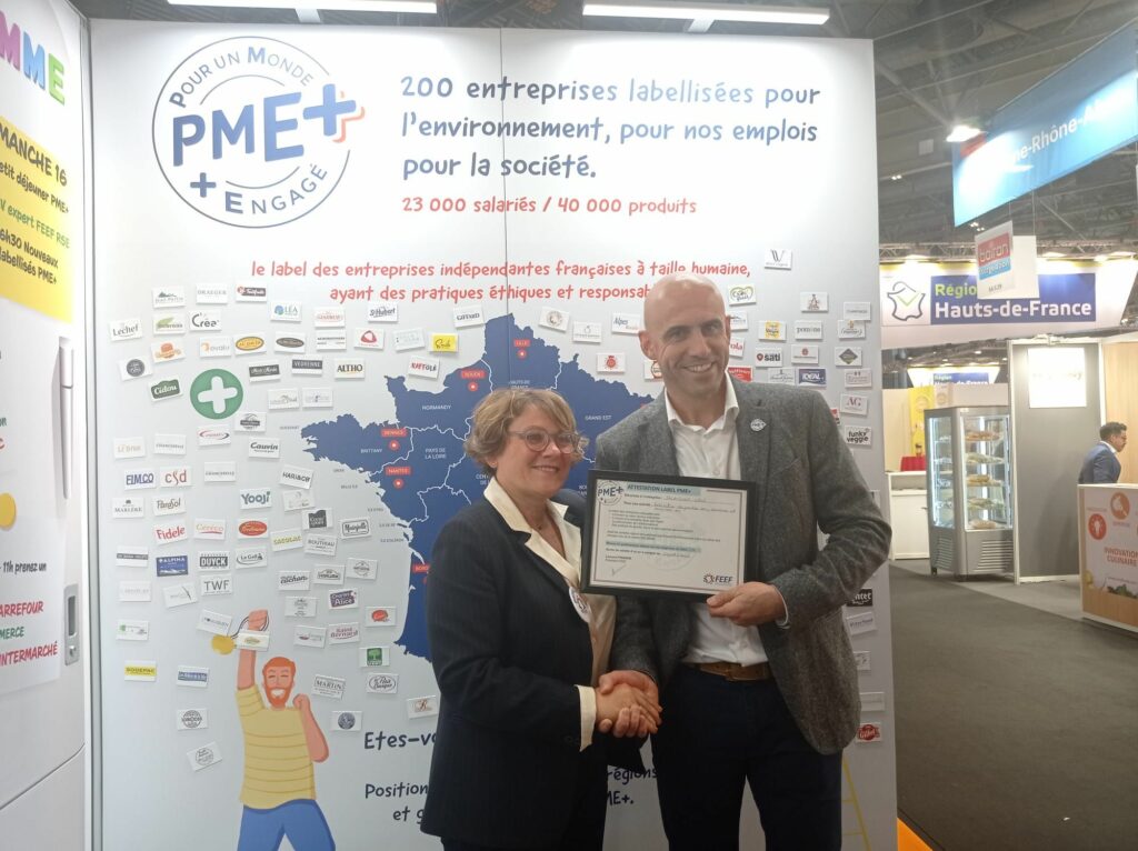 Félicitation à la Compagnie des Pâtissiers représentée par à Marc Siari, dirigeant. Une PME+ engagée pour promouvoir une consommation responsable, œuvrer au bien-être des salariés, maitriser son impact sur l’environnement. Labellisation remise par Christine Barthe, Déléguée générale de la FEEF.