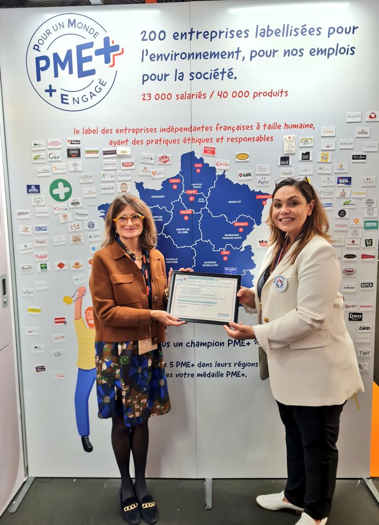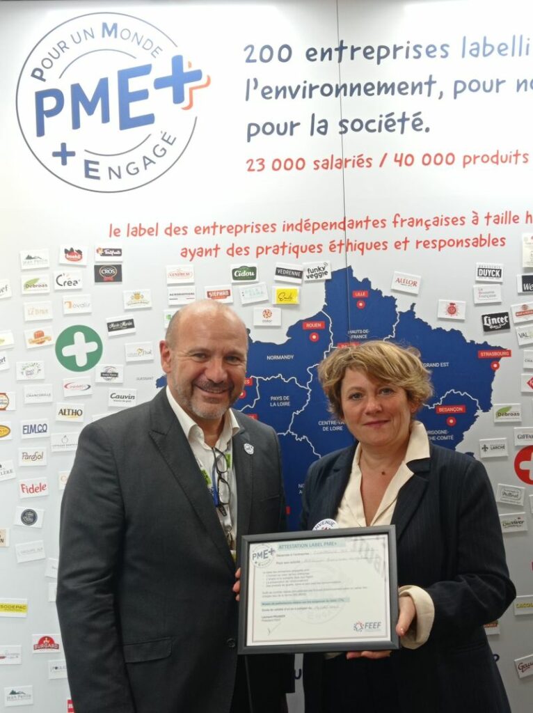Toutes nos félicitations à Mulot & Petitjean, représenté par Catherine Petitjean, qui renouvelle sa labellisation PME+. Une PME + engagée RSE dans la valorisation de ses déchets. Labellisation remise par Carole Cazaban, responsable relations RHD de la FEEF.