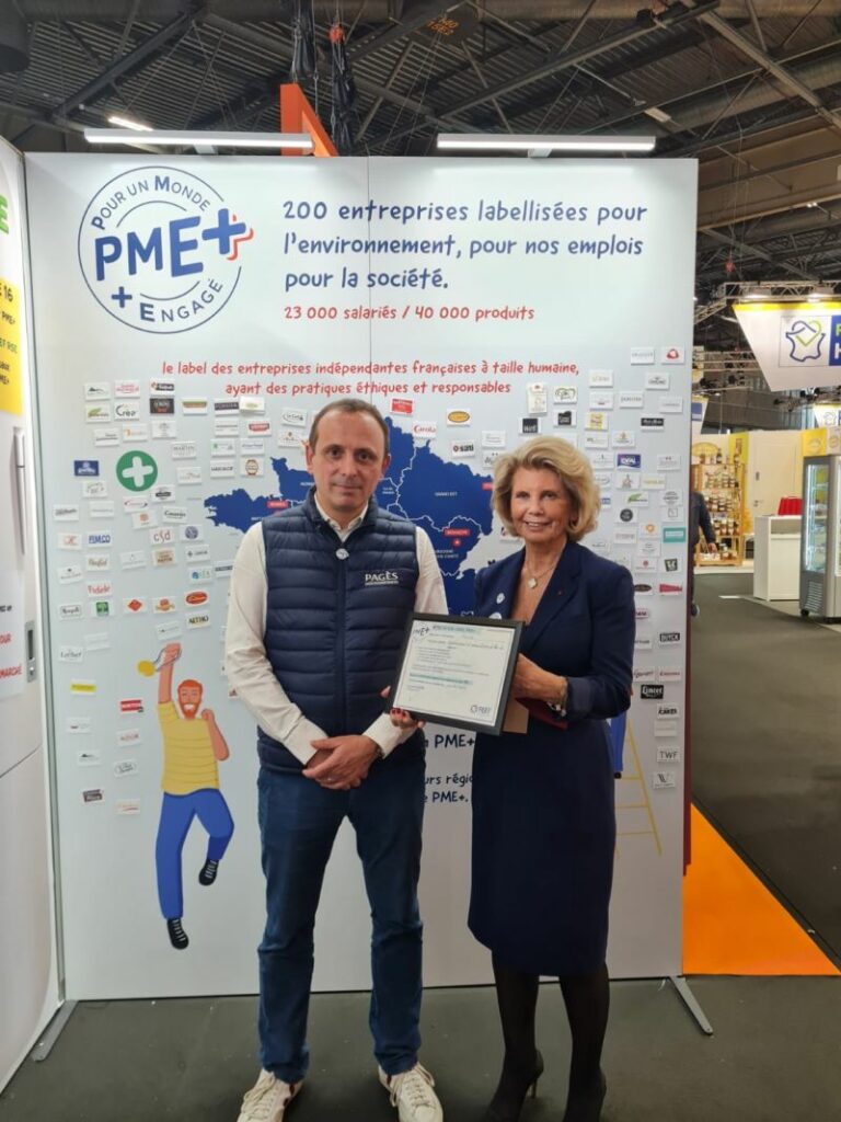✔️ PAGES, une labellisation remise par Jeanne Cluzel Lemoine, vice-présidente de la FEEF à Thomas Auriau, Directeur général. Une reconnaissance des engagements RSE de l’entreprise : suppression des emballages plastiques, réduction de l’empreinte carbone, relocalisation de plantes à infusion en France, partenariats avec des fournisseurs locaux.