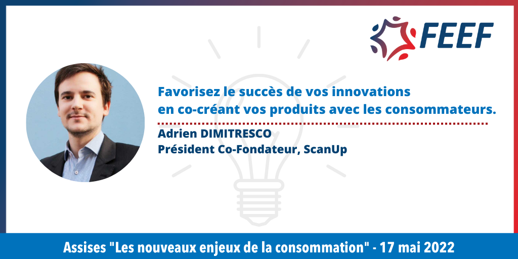 « L’industrie fait du « push produit » depuis 60 ans. Ce qui entraîne la création de nombreuses innovations qui disparaissent deux ans après leurs lancements. Une solution : écouter et co-créer avec les consommateurs. Scanup vous propose de tester le produit avant sa mise en rayon afin de les valider auprès des consommateurs ».