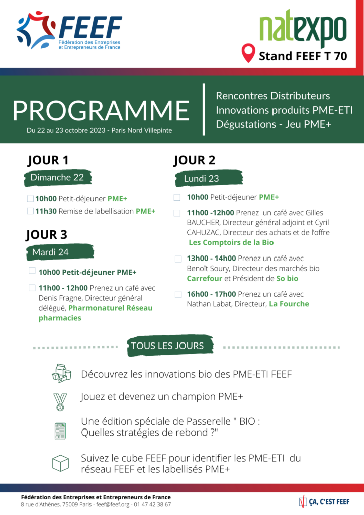 L’équipe de la FEEF vous donne RdV du 22 au 24 octobre stand T 70.